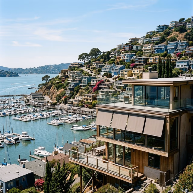 Discount Best Blinds and Shutters serves Sausalito, CA 94965, including Caledonia Street, Marinship, and hillside neighborhoods. As a Hunter Douglas authorized dealer, we provide complimentary design consultations, custom measurements, and professional installation of marine-grade motorized blinds, shades, and shutters built to withstand Sausalito's intense salt-air environment.