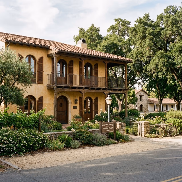 The historic Sonoma Plaza is the heart of the city, surrounded by adobe buildings, Spanish Colonial architecture, and landmark properties that define Northern California's earliest colonial heritage. Window treatments here must honor that history. Period-accurate plantation shutters matched to original millwork profiles are the most popular choice, offering precise light control while maintaining architectural integrity. We custom-size every installation for the non-standard window openings common in historic buildings and ensure all hardware is heritage-sensitive.