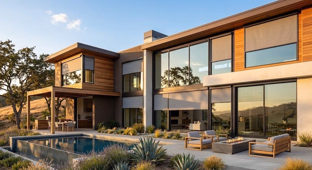 Homes in Healdsburg with large west-facing glass walls face the most demanding compliance scenario: achieving both U-factor 0.27 and SHGC 0.17 simultaneously. The solution typically involves pairing a solar shade for SHGC control with a cellular shade for U-factor insulation - a dual-layer approach that addresses both metrics at the same window. For architectural glass walls, recessed headrail systems with motorized dual-shade brackets maintain clean sightlines while delivering full compliance.